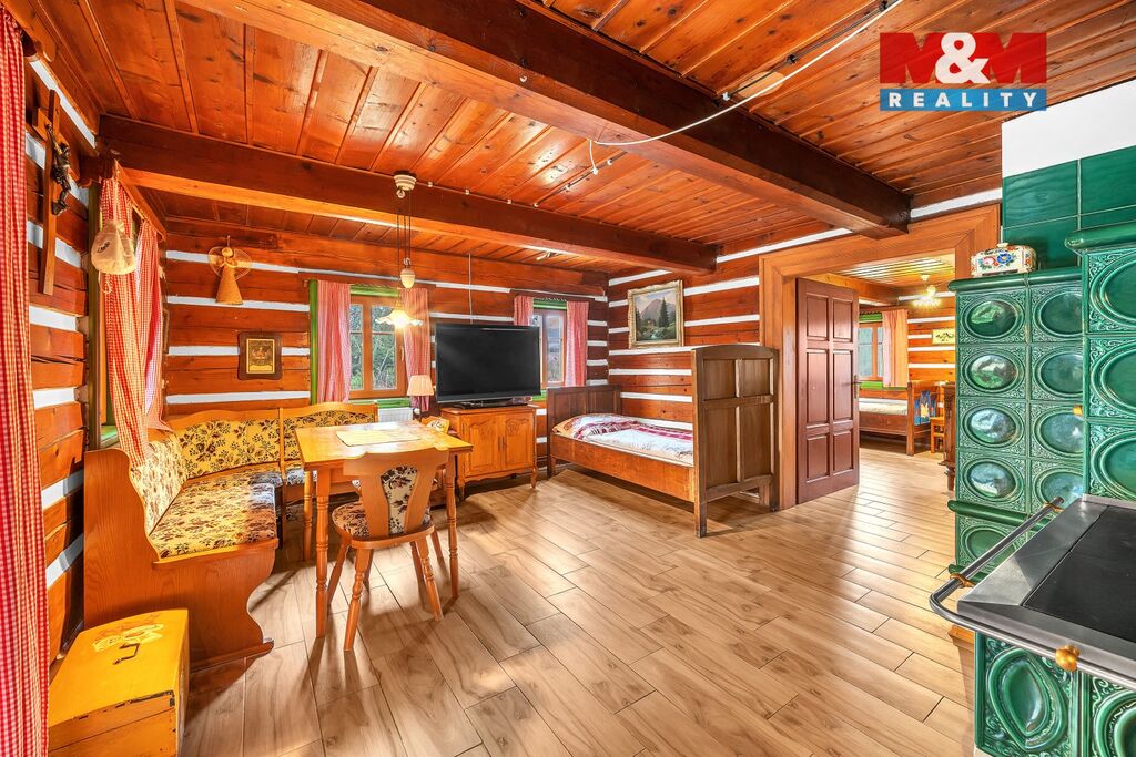 Popis: Vážení klienti, nabízíme k prodeji typickou " krkonošskou boudu na samotě u lesa", s krásným výhledem na hory. V létě i zimě je odtud možno vystoupit na naši nejvyšší horu Sněžku. 200 -300m od nemovitosti jsou restaurace, pošta a lyžařský areál. Zařízený penzion nabízí stálou klientelu s celoročním provozem. Rozsáhlé rekonstrukce objektu probíhali v průběhu několika posledních let, podlahy, dřevěné prvky, zajišťující původní ráz nemovitosti. Stavba je tedy z částí roubená a část zděná dvoupodlažní, s obytným podkrovím. K dispozici celkem 20 místností, 9 pokojů o celkové kapacitě 32 míst. V penzionu restaurace (formou bufetu), bar. Společenská místnost, k dispozici TV. Každý pokoj má vlastní sociální zařízení a bojler. Prodej chalupy s veškerým vnitřním vybavením. Vytápění objektu je zajištěno ústředním topením, elektrokotel (možno topit i dřevem), kachlová kamna napojena do topného systému výhodou. Zimní sezóna zde začíná o 14 dní dříve než v jiných částech Krkonoš.