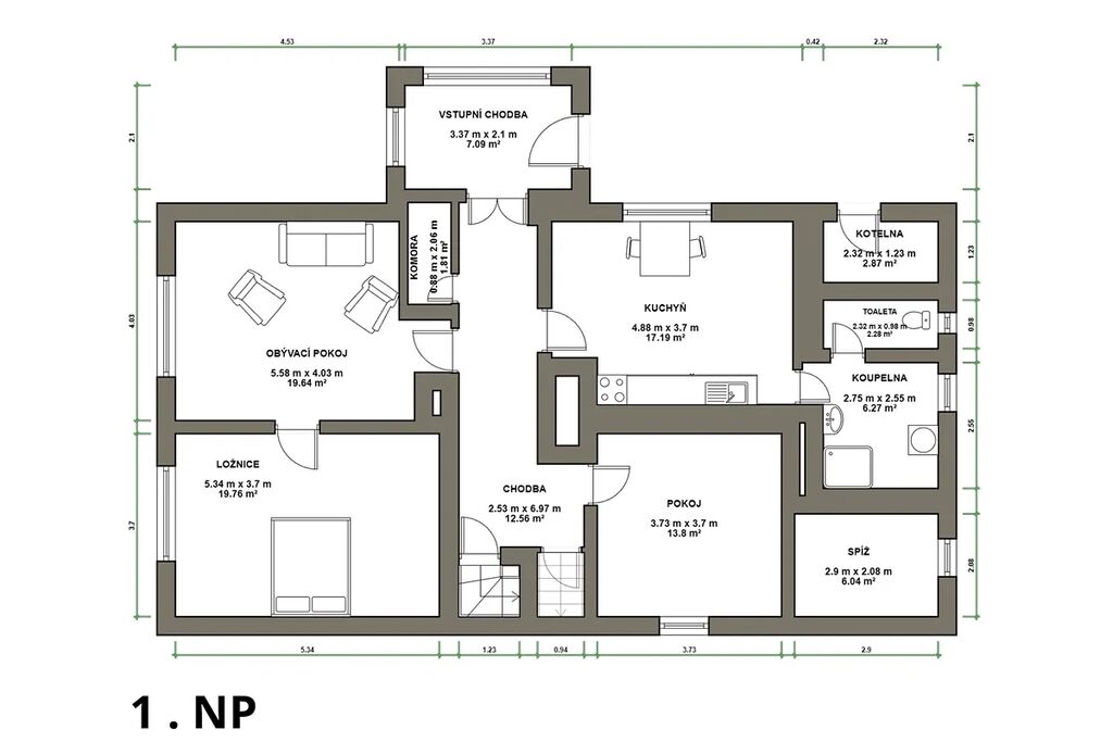 Tento dům je ideální volbou pro ty, kteří hledají prostor, přírodu, výbornou dostupnost a možnost vytvořit si domov podle svých představ.