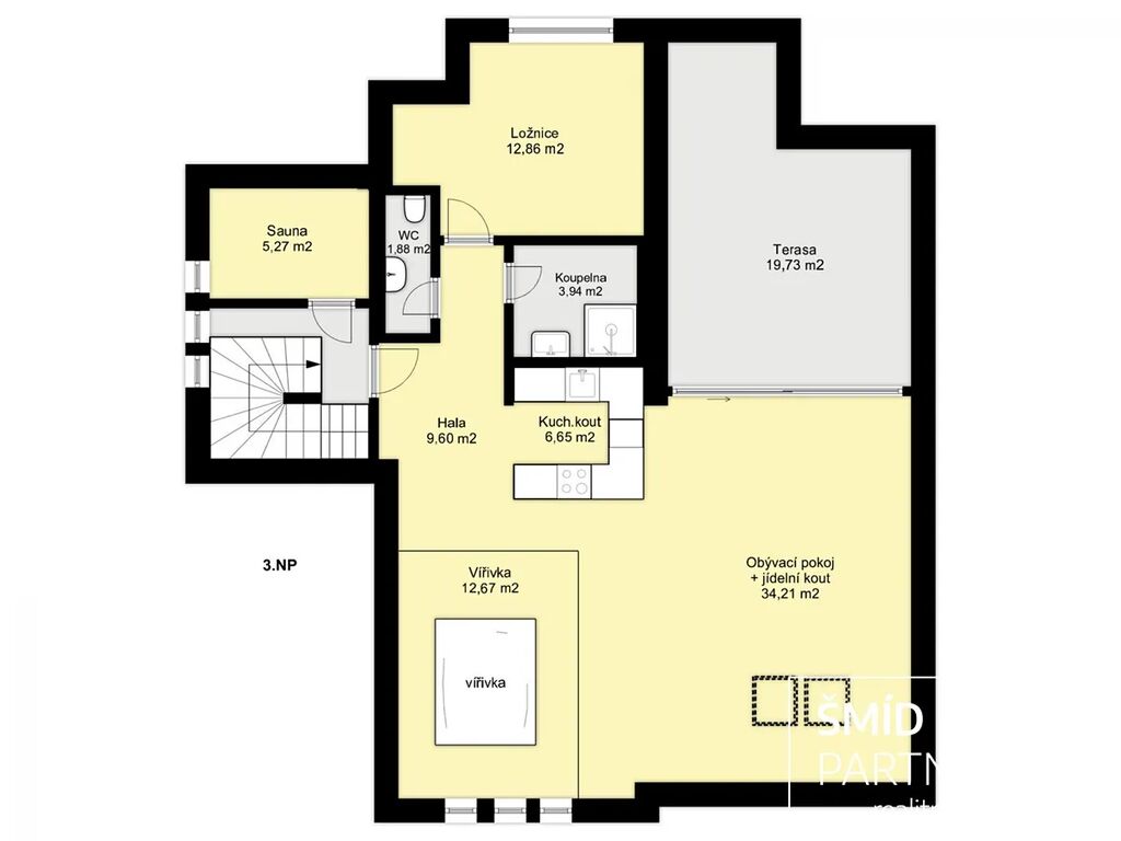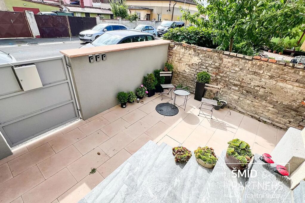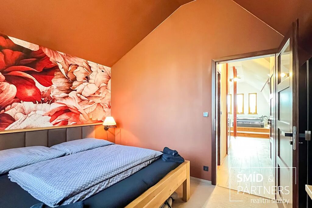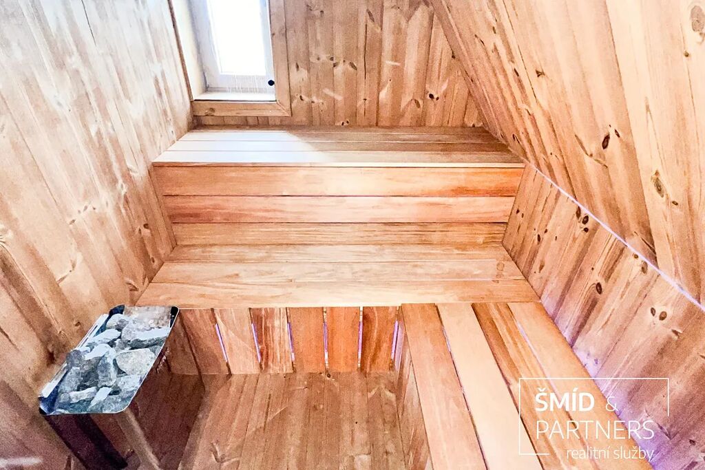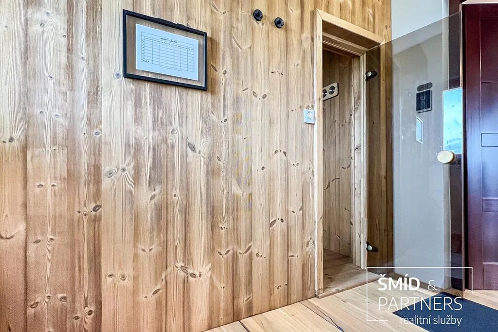 Tento podkrovní byt je luxusně vybaven moderní kuchyní, vířivou vanou, velkou terasou, prostorným obývacím prostorem, saunou a zahradou, která je k dispozici všem vlastníkům domu. Kuchyň je vybavena troubou, mikrovlnnou troubou, lednicí s mrazákem, indukcí a myčkou. Ve spolupráci s architektkou zde vnikl příjemný prostor k bydlení a zároveň místa pro relaxaci. Z terasy je výhled na zahradu, v jejíž zadní části je k dispozici pergola. Díky stromům a vyšším plotům zde můžete strávit čas v poklidu a relativně v soukromí.