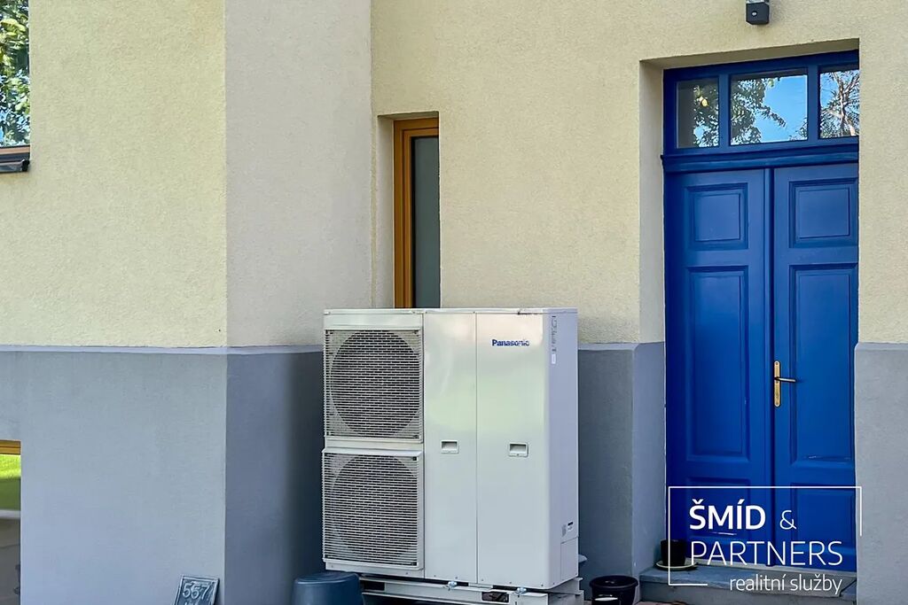 Vytápění je zde pomocí tepelného čerpadla na principu vzduch - voda, tudíž slouží i pro ohřev vody.