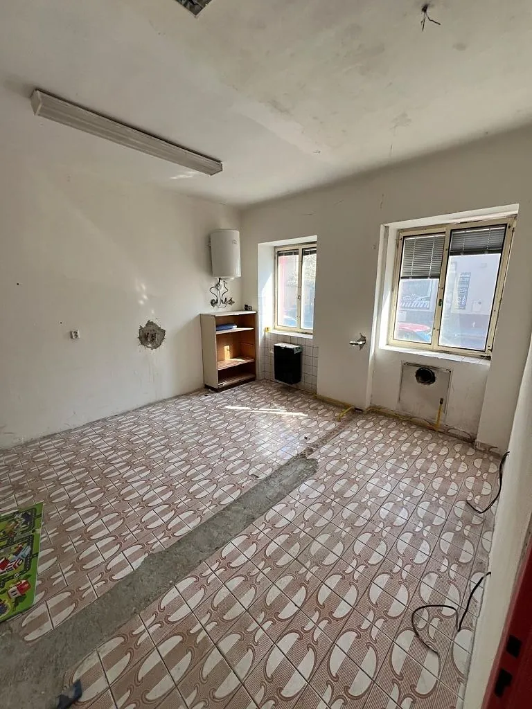 Hlavní vstup do obchodního prostoru bývalé cukrárny o výměře 30 m2 z hlavní ulice,navazující prostor bývalé kuchyně o výměře 20 m2, možnost vybudování druhého vstupu z hlavní ulice do třetího obchodního prostoru o výměře 20m2, uložný prostor, chodba spojující všechny 3 prostory a 2x soc.zařízení včetně WC, umyvadla i vany.
