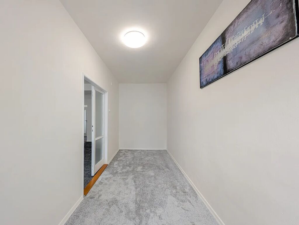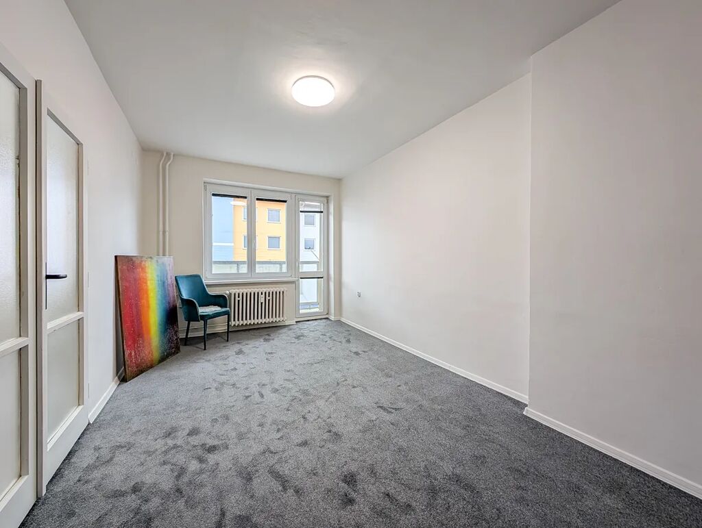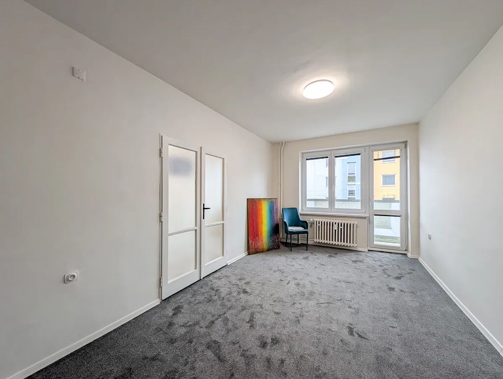 Byt je průběžně udržovaný a těšit se můžete na plastová okna, nové podlahové krytiny a interiérové dveře. Koupelnové jádro je původní, avšak také prošlo v dřívějších letech modernizací, kdy bylo obloženo obklady, instalován sprchový kout a příprava na pračku. Z obývacího pokoje je přístup na balkon orientovaný na jih a díky tomu je v interiéru dostatek světla po celý den. Pokud by Vám současná dispozice nevyhovovala, lze z bytu vykouzlit vzdušné 3+kk nebo bydlení s třemi neprůchozími pokoji.