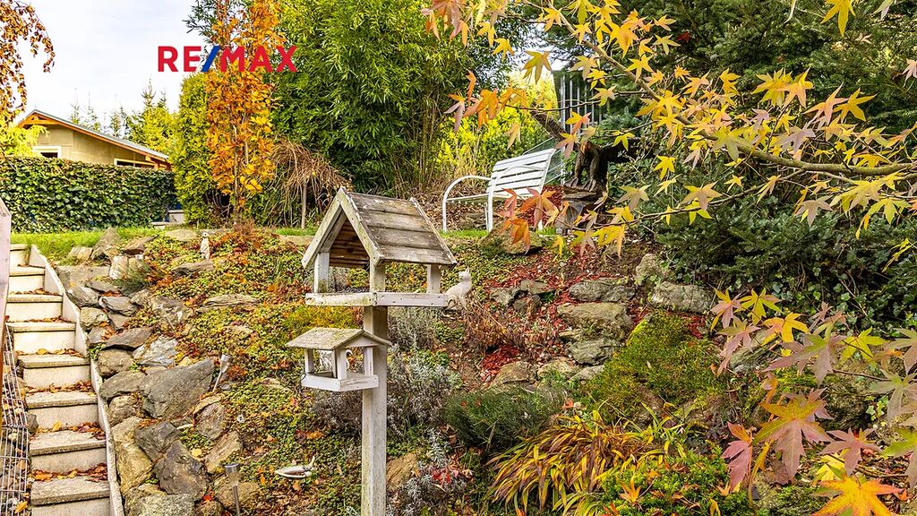Dominantou nabídky je krásná, pečlivě udržovaná zahrada. Vzrostlé keře a kvalitní oplocení vytvářejí přirozenou clonu od sousedních pozemků, takže získáte skutečné soukromí pro rodinu i přátele. Zahrada je mírně svažitá, pečlivě a pravidelně udržovaná a nabízí několik „zón“: prostor pro ranní kávu na terase, trávník na dětské hry, zákoutí pro bylinkový či zeleninový záhon a klidné místo na večerní posezení. Díky promyšlené výsadbě je tu příjemně od jara do podzimu – a i v zimě zahrada působí upraveně.