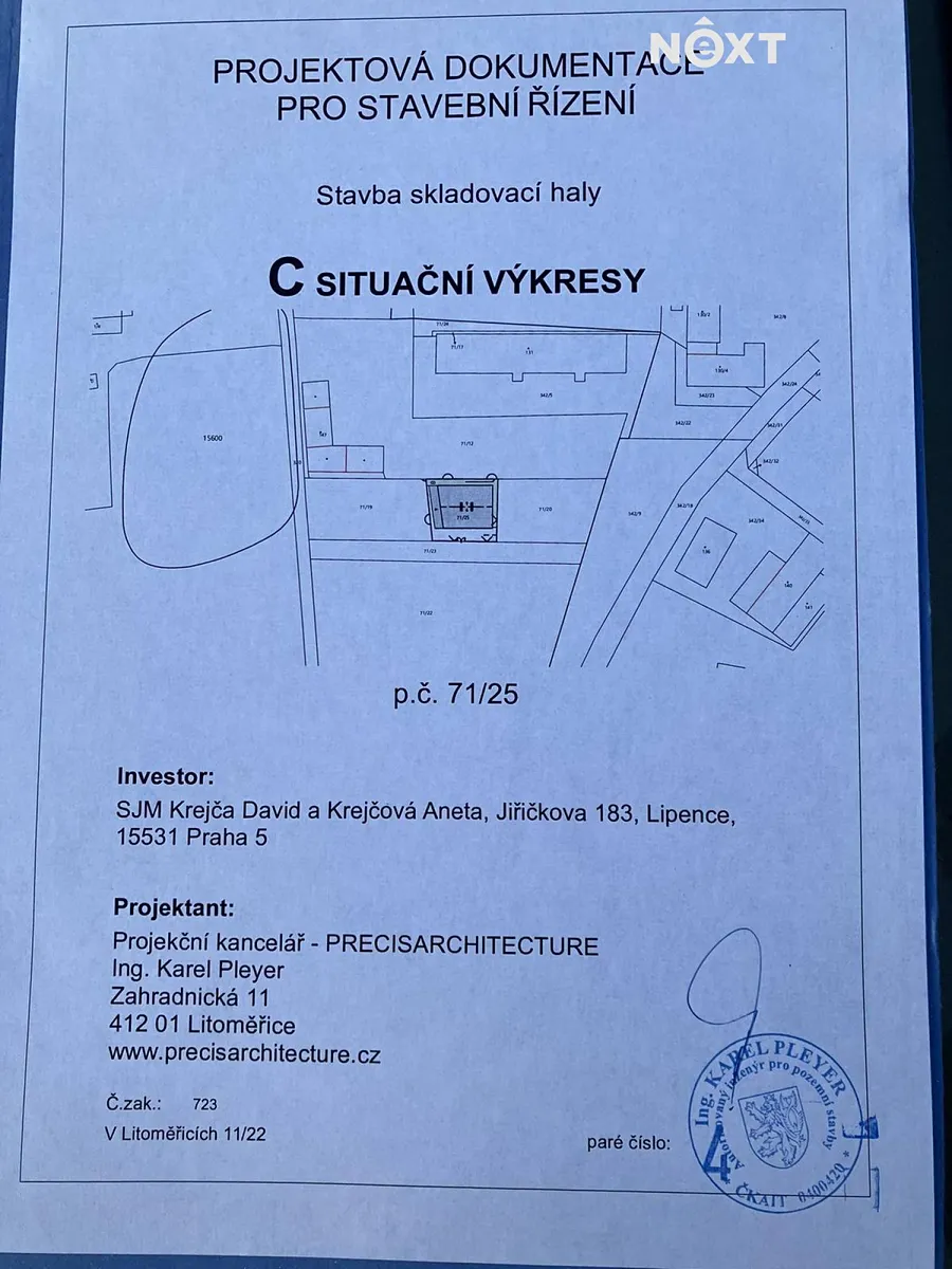 Exkluzivně nabízíme prodej komerčního pozemku v obci Mlékojedy u Litoměřic o výměře 1000 m2. Na pozemek je vydané stavební povolení na skladovací halu o výměře 500 m2. Pozemek se nachází ve vzdálenosti pouhých 6km od dálničního sjezdu na 45. kilometru dálnice D8 a v bezprostřední blízkosti od centra města Litoměřice.