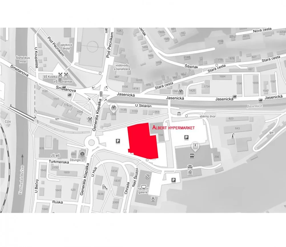 V zastoupení společnosti Albert Česká republika s.r.o. nabízíme obchodní plochu k pronájmu pro umístění zmrzlinového stánku před hypermarketem Albert Vsetín na ulici Generála Klapálka 300.