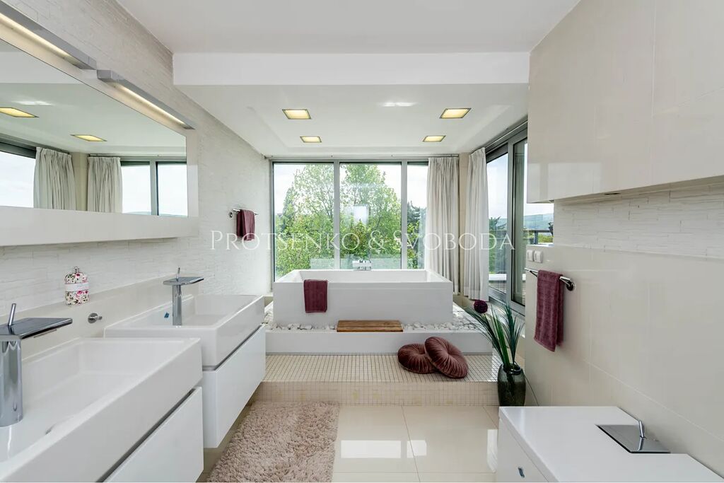 Společnost Protsenko & Svoboda v zastoupení majitele nabízí k prodeji moderní rodinný dům o rozloze 460 m² s terasou o rozloze 30 m² na pozemku 874 m², v klidné a vyhledávané lokalitě Lamač.