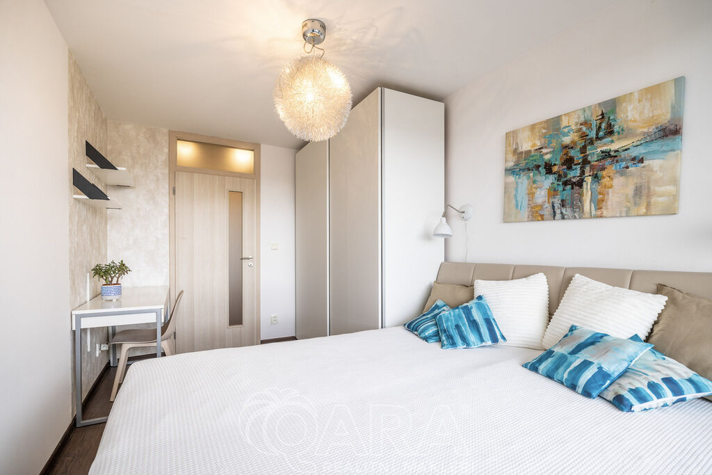 Hlavní ložnice je vybavena pohodlným dvoulůžkem, šatní skříní a pracovním stolem.