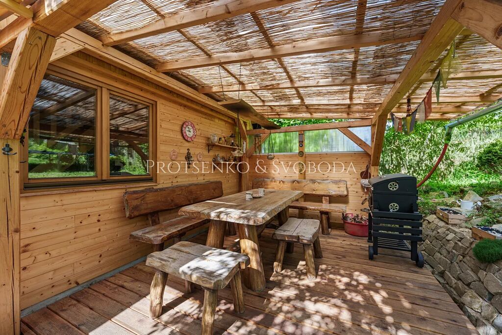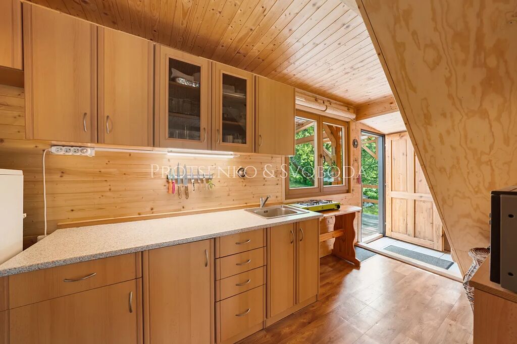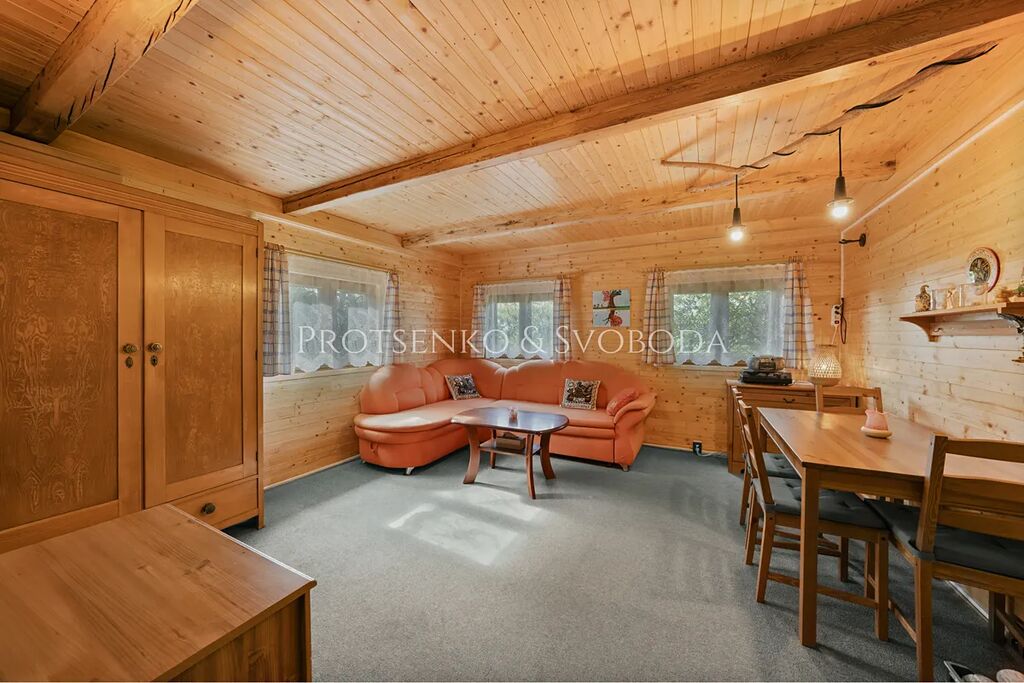 V chatě panuje útulná atmosféra, ideální pro rodiny s dětmi nebo páry hledající klid. Do podkroví není zatím zavedena elektřina – prostor lze upravit dle vašich potřeb. Celkový charakter nemovitosti spojuje komfort s jednoduchostí a úctou k přírodě.