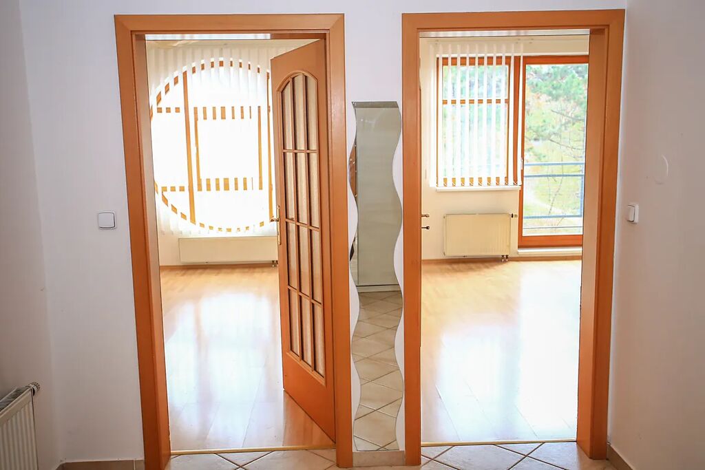 Byt o celkové ploše 55 m² (včetně sklepa 1,4 m² a balkonu 3,1 m²) nabízí dva neprůchozí pokoje, prostornou předsíň, velkorysou koupelnu s toaletou a vyšší stropy, které umocňují vzdušnost celého prostoru.