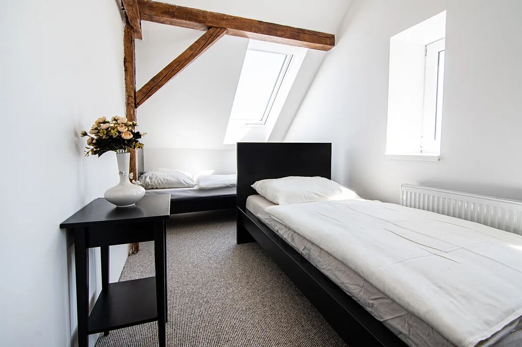V hlavní budově se nachází ubytovací zařízení s obytnou plochou 198 m², které nabízí 7 komfortních pokojů s vlastním sociálním zařízením. Maximální kapacita ubytování je 16 osob.