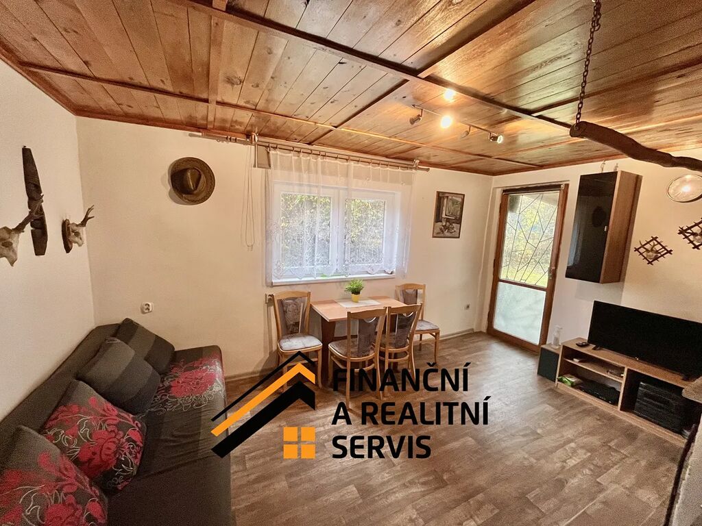 V přízemí je koupelna se sprchovým koutem, wc, kuchyň s plynovým sporákem a obývací pokoj s krbovou vložkou.