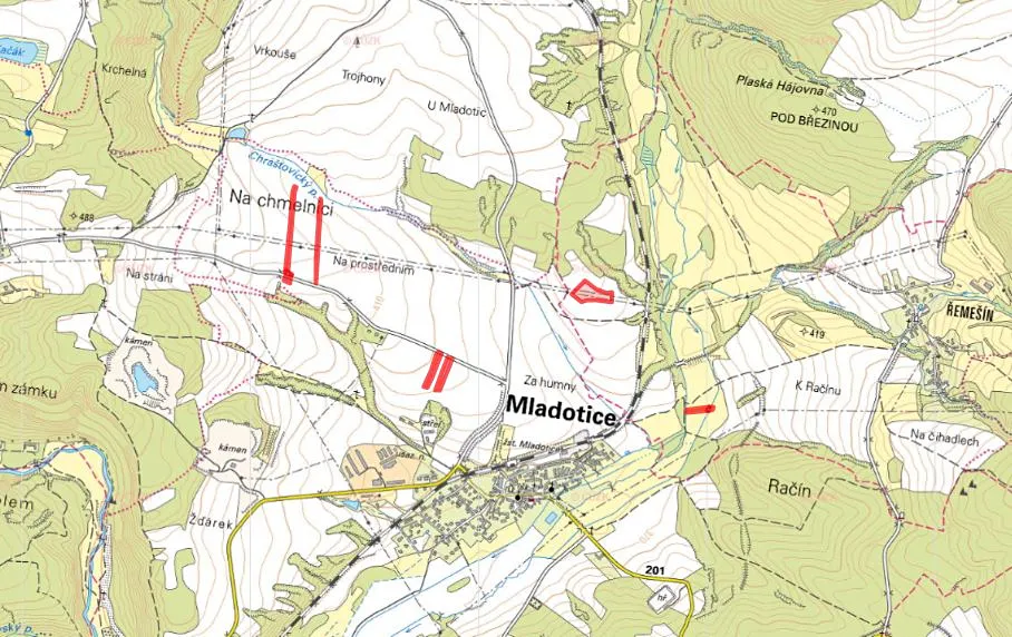 Jedná se o parcely: 265/17, 432/8, 432/16, 488.