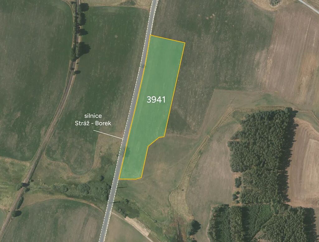 Nabízíme k prodeji zemědělský pozemek v katastrálním území Stráž u Tachova v okrese Tachov. Jedná se o parcelu č. 3941, která je zapsaná na LV 473. Pozemek je ve 100% vlastnictví a jeho celková výměra činí 25 709 m².