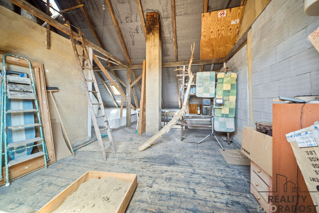 V patře se nachází další dva obytné pokoje. Druhá polovina půdy čeká na vytvoření dalších obytných místností.