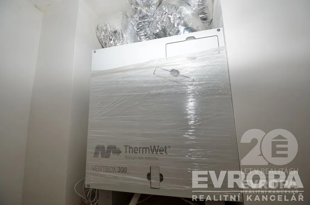V prostoru je instalovaná profi rekuperační jednotka Thermwet, která zajišťuje neustálou výměnu vzduchu z prostoru za čerstvý ze zahrady vnitrobloku domu a odvod případné vlhkosti. Celá nebytová jednotka prošla kompletní rekonstrukcí, včetně elektro a vodoinstalace. Vytápění je zajištěno ústředním topením, dům má svůj vlastní kotel, včetně ohřevu vody. Nebytová jednotka je umístěna v suterénu bez přístupu denního světla. V domě funguje skvěle SVJ, které se o nemovitost řádně stará.