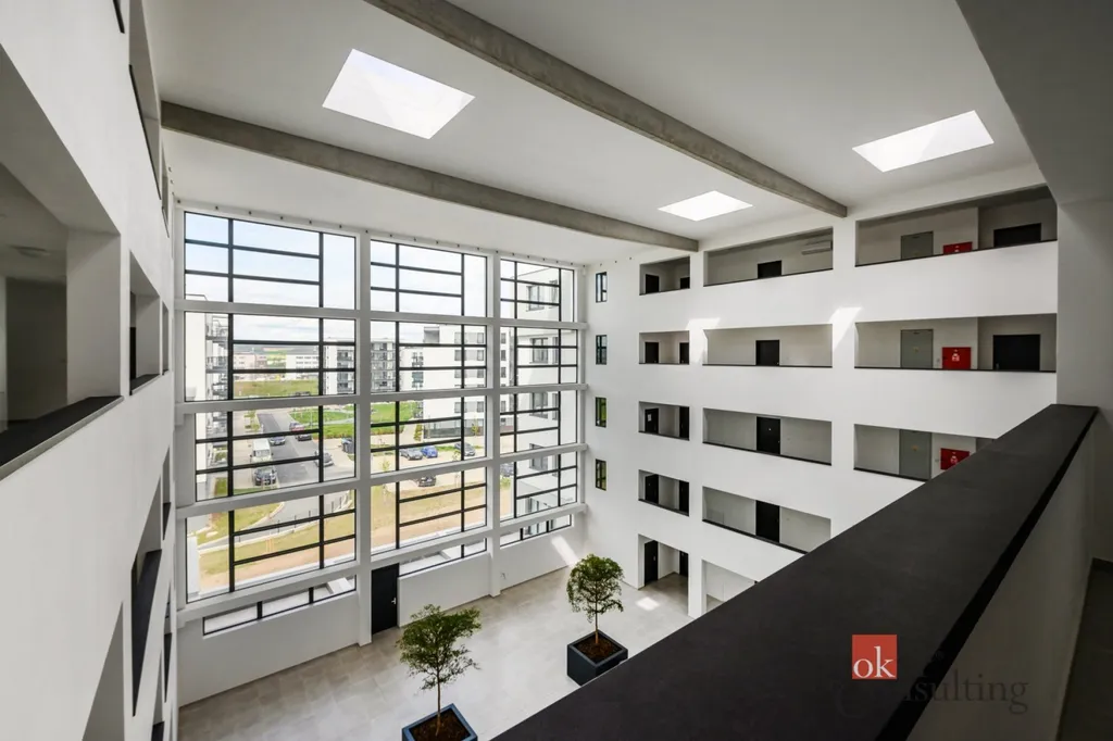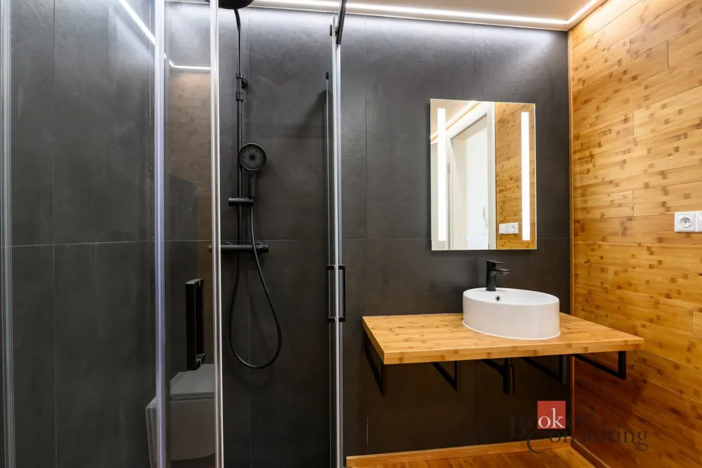 Na prodej zcela nový luxusní dvoupodlažní byt o dispozici 3+kk s dvěma terasami o celkové výměře 131 m2, nacházející se v 6. a 7. NP novostavby s atriem v Plzni na Skvrňanech. Byt byl před několika týdny dokončen, má kvalitní bambusovou podlahu, bambusové obklady na stěnách, klimatizaci a luxusně zařízené dvě koupelny. Chybí jen kuchyňská linka a svítidla, které si vybere již nový vlastník. Je součástí moderního rezidenčního projektu Nové Skvrňany, který klade důraz na kvalitní materiály, funkční dispozice a pohodlné městské bydlení. Součástí bytu jsou dvě terasy s výhledem na Plzeň z nichž na jedné je již instalována vířivka, dvě ložnice s prostory pro šatnu, dvě koupelny se sprchovým koutem i vanou a oddělenou toaletou. K bytu dále náleží prostorná sklepní kóje a k bytu je možné přikoupit i dvě parkovací stání v suterénu domu. Vytápění domu i ohřev vody je řešeno dálkově.