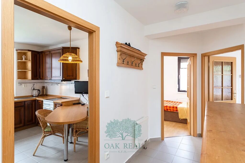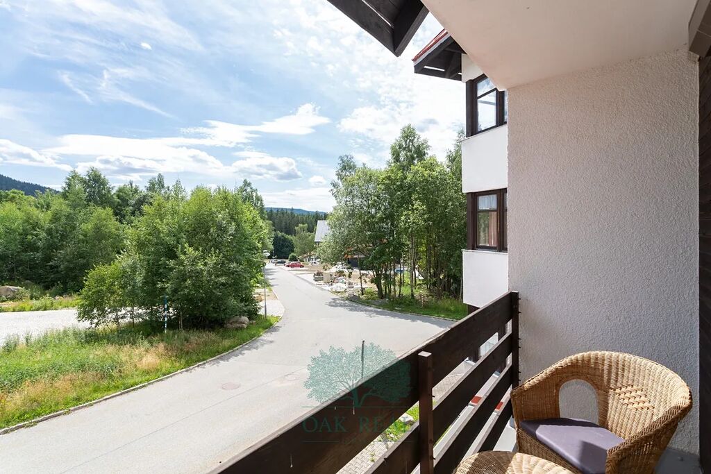 Výhradně si vám dovolujeme nabídnou k prodeji apartmán s dispozicí 2+1, se třemi lodžiemi a garáží, v 2 nadzemním podlaží v klidné okrajové části města Harrachov, na dohled Čertovy hory, Krkonoše.