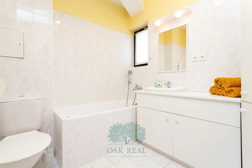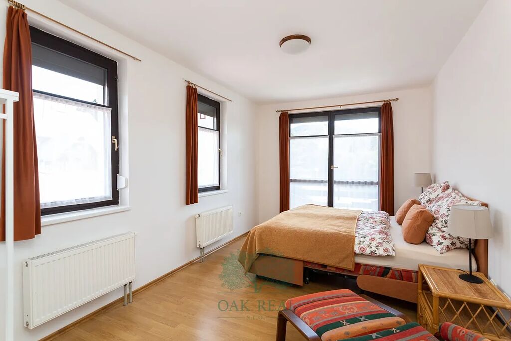 Okna jsou dřevěná s předokenními žaluziemi. Na podlahách je dlažba a plovoucí podlaha. Byt má samostatný plynový kotel, který se dá ovládat na dálku pomocí telefonu. K bytu náleží v 1 podzemním podlaží sklep pro umístění lyží a jiných potřebných věcí. Dále je součástí prodej garáž o velikosti 15,4 m2. Před garáží je navíc dostatek místa, kde případně můžete zaparkovat druhý vůz. Celý apartmánový komplex je ve velice dobrém a udržovaném stavu.