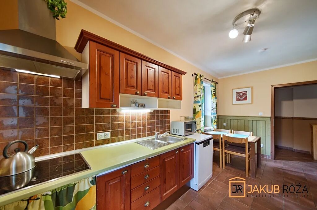 Pro společně strávené chvíle vybízí prostorná hala (společenský prostor) s ping pongem, stolním fotbálkem, dětským koutkem a dále je zde velký stůl ke společnému posezení, večerní zábavě a dětským hrám. V domě je k dispozici lyžárna i sušák na lyžařskou obuv. Dům dále nabízí v přízemí dva samostatné apartmány 2+1 a původní podsklepenou klubovnu, která může být přestavěna na samostatný prostorný apartmán o výměře cca 75 m2, nebo je možné tento prostor propojit s vedlejším apartmánem a vznikne tak veliký apartmán o výměře 124 m2. V této původní části budovy je nově vybudována přípojka vody, připojení k tepelnému čerpadlu a nové napojení na hlavní el. rozvaděč. V podkroví jsou k dispozici další tři apartmány - dva apartmány 2+kk a jeden apartmán 1+kk.