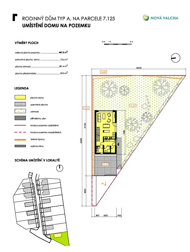 Dovolujeme si vám nabídnout rodinný dům 4+kk o celkové výměře 108 m², zahradou o výměře 381 m² a předzahrádkou 33 m², který je součástí nově vznikající již 7. etapy projektu Nová Valcha.