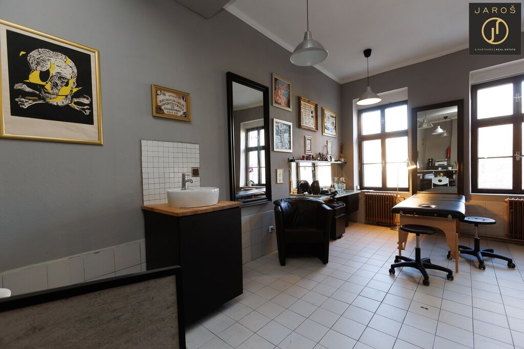 Tyto prostory se nacházejí v 1. patře domu Fit studia Venuše s vysokou koncentrací lidí a jsou vhodné pro kanceláře, učebnu, ordinaci, salon ... Prostor nyní slouží jako tetovací salon. Po dohodě je zde možné část zařízení zanechat.