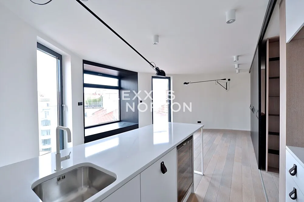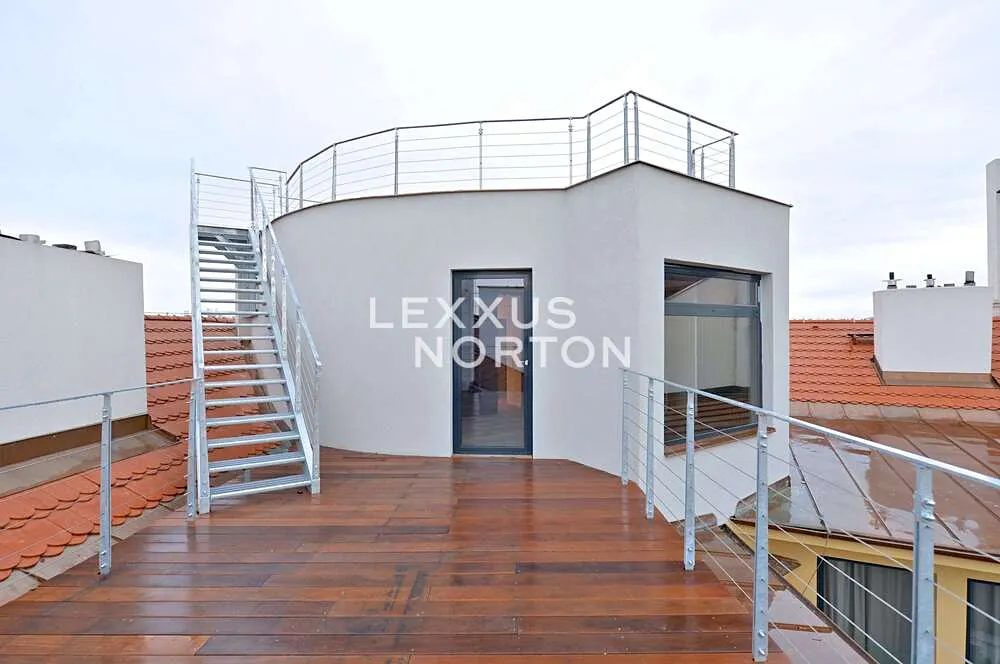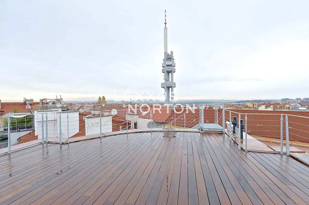 Nabízíme prostorný částečně zařízený byt 2+kk o velikosti 60 m2, který doplňují 2 velkorysé terasy (40 m2 a 60 m2) s výhledy na nejkrásnější místa Prahy a rezidenční atmosférou, umístěný v 5. patře domu s výtahem.