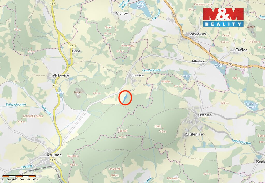 Prodej lesního pozemku o celkové ploše 10718 m² v katastrálním území Buršice, obec Kolinec. Na pozemku se nachází smrkový porost. Jedná se o prodej 100% podílu.