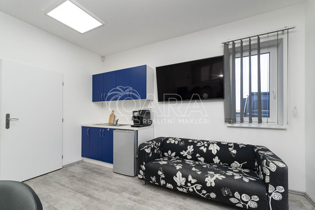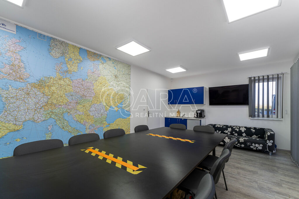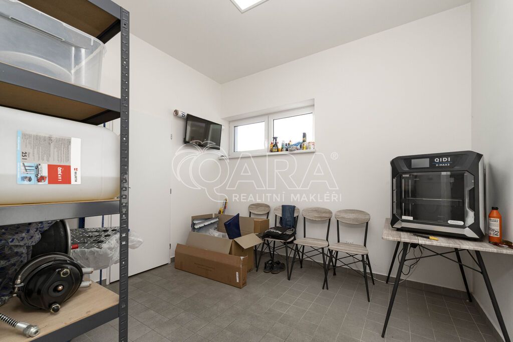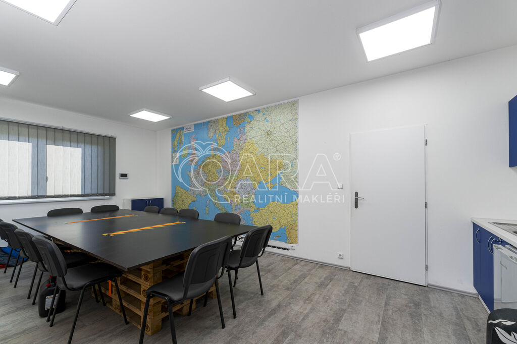 Celková plocha k pronájmu činí 425 m². Hlavní část tvoří skladová nebo výrobní hala o rozloze 336 m². V přízemí se dále nachází kancelář, kuchyňka, šatna, sprcha a dvě samostatná WC. Vytápění prostor je zajištěno úsporným tepelným čerpadlem vzduch–voda. Průměrné měsíční náklady na elektřinu v loňském roce byly 5 700 Kč.