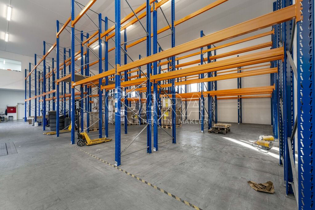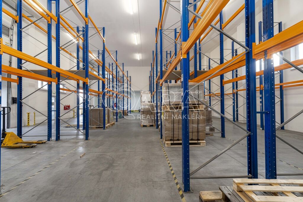 Součástí haly je regálový systém a elektrický vysokozdvižný zakladač – nejsou zahrnuty v nájmu, ale lze se individuálně domluvit na jejich pronájmu.