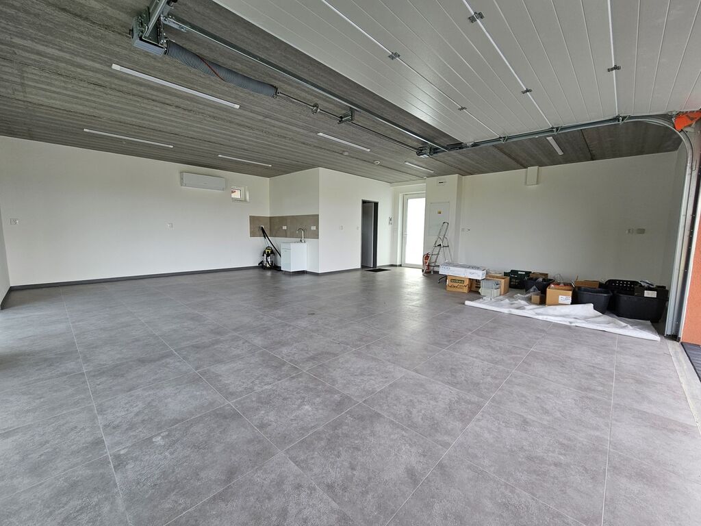 V přízemí jsou skladové prostory - výška stropu 2,6 m, sekční vrata 4m široká a 2,35 m vysoká a toaleta se sprchou.