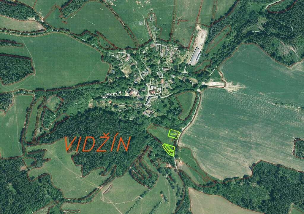 Nabízíme k prodeji dva pozemky o celkové výměře 3 000 m² v obci Vidžín. Pozemky jsou v katastru nemovitostí evidovány jako trvalý travní porost. Vidžín je malebná vesnice v okrese Plzeň-sever, nacházející se v kopcovité lesnaté krajině mezi obcemi Úterý a Teplá, přibližně 20 km od Mariánských Lázní. Okolí je charakteristické mírně zvlněnou krajinou s lesy, loukami a poli. Díky své poloze v čisté přírodě je Vidžín oblíbeným místem pro rekreaci a pořádání kulturních akcí. Pozemky lze zakoupit i jednotlivě. Název katastrálního území je Vidžín. V případě zájmu nás neváhejte kontaktovat.