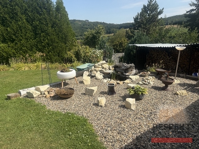 Zahrada je perfektně udržovaná, s okrasnými keři, trvalkami, zeleninovými a ovocnými záhony a spoustou nádherných zákoutí. Je oplocená kvalitním drátěným plotem s vjezdem dvoukřídlými vraty na pozemek.