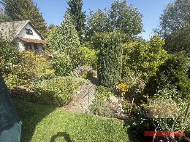 Zahrada je perfektně udržovaná, s okrasnými keři, trvalkami, zeleninovými a ovocnými záhony a spoustou nádherných zákoutí. Je oplocená kvalitním drátěným plotem, vjezd na pozemek je zajištěn dvoukřídlými vraty.