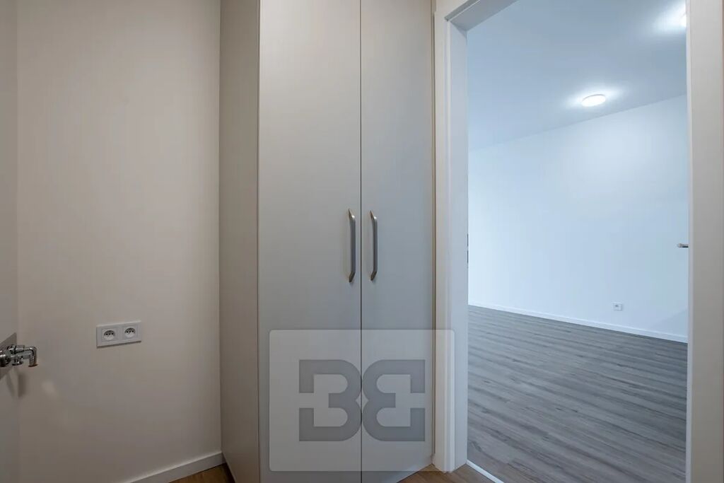 Byt je nabízen nevybavený, součástí je však moderní kuchyňská linka s vestavěnými spotřebiči – myčka, trouba, mikrovlnná trouba, digestoř a lednice s mrazákem. V předsíni je k dispozici vestavěná šatní skříň, která poskytuje dostatek úložného prostoru.