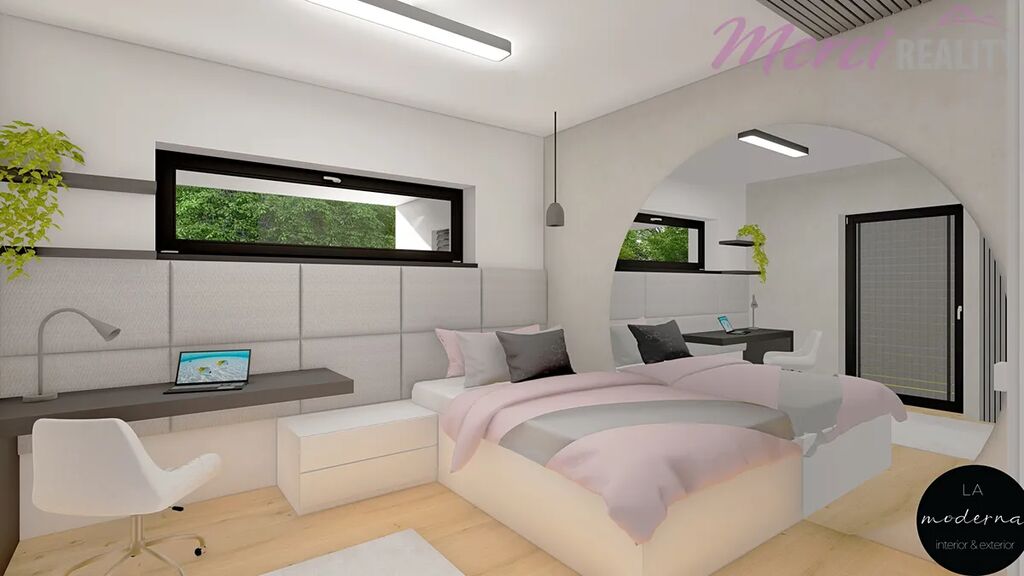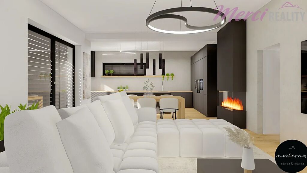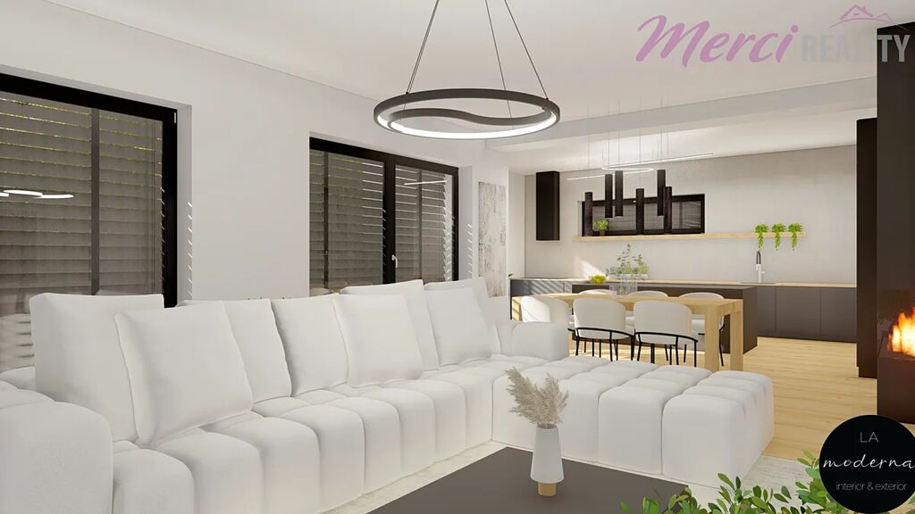 Hledáte nové nadstandardní bydlení v okolí Uherského Hradiště? Pokud nechcete dlouze čekat na koupě vhodného pozemku a řešit projekt se stavebním povolením, tak tu máme něco právě pro Vás. Nabízíme Vám hrubou stavbu rodinného domu s dispozicí 4+kk s terasou 50m2 ve městě Kunovice v ulici Na Samotě. Částečně podsklepený dům je postaven velmi kvalitně z betonových tvárnic. Z levé strany domu je vjezd do garáže, kde se také počítá s prostorem na vinný sklípek s posezením. Příjemné je také, že garáž má přístup schody přímo do domu. Kolem domu je postavený betonový plot, který čeká už jen na fasádní barvu a vstupní bránu na dálkové ovládání. Zastavěná plocha tohoto domu je 199,5 m2 + terasa 50m2. Vytápění domu bylo navrhnuto plynem, který je již přiveden přímo k domu. Samozřejmě je na novém majiteli jaké si zvolí vytápění. V obývacím pokoji se také počítalo nejen pro příjemnou atmosféru, ale i s náhradním vytápěním se spuštěným prostorovým krbem. Část střechy domu je téměř rovná a druhá část je střecha valbová. Střecha je pokryta trapézovým plechem o tloušťce 1,1mm. Kromě napojení domu na obecný vodovod, je také na předzahrádce k užívání studna. V přední části domu jsou dva pokoje umístěné naproti sobě pro absolutní soukromí. Z pokoje v pravé části domu se může vstoupit na dvůr z boční strany. Z druhého pokoje se zase vstupuje na menší terasu. Přes vstupní halu dále je chodba, koupelna s WC, technická místnost, prostorná kuchyň s jídelním koutem 38m2 a spolu s obývacím pokojem má dohromady 55m2. Z kuchyně a z obývací části domu je vstup na terasu a zahradu. Do ložnice 18,2 m2 se vchází také z obývacího pokoje a u ložnice je také připravený prostor na koupelnu s WC. Připravili jsme si pro Vás vizualizaci exteriéru i interiéru pro představu, jak by dům mohl po dokončení vypadat. Výhodou domu v hrubé stavbě je, že je ve stavu, kdy si můžete upravit, navrhnout a vybavit již vše dle Vašeho vkusu.