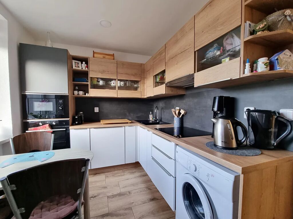 Byt se skládá z chodby s úložnými prostory, samostatného WC, koupelny s vanou, kuchyně, prostorného obývacího pokoje s lodžií a dvou neprůchozích pokojů. Orientace bytu je na jihovýchodní stranu, byt je tak dobře prosvětlený. V roce 2022 proběhla rozsáhlá rekonstrukce bytu vč. rozvodů elektřiny. Podlahy jsou vinylové. Kuchyňská linka obsahuje vest. spotřebiče. Všechna okna jsou plastová. Vytápění a ohřev vody jsou ústřední přes centrální plynovou kotelnu. Parkování je dostupné na parkovišti v blízkosti domu. V domě je k dispozici také kolárna.