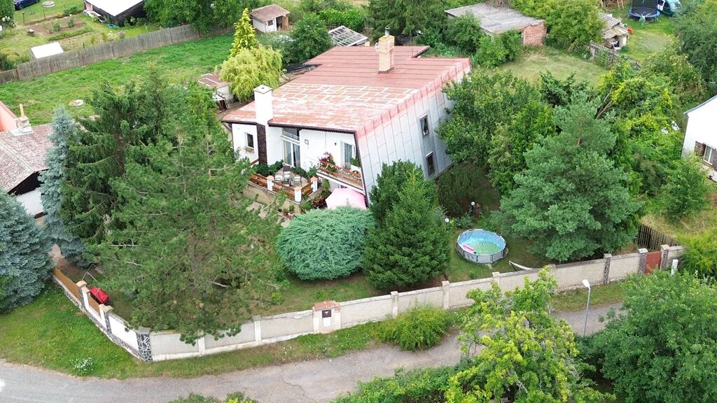 Vlastní pozemek 1.172 m2, zastavěná plocha domu 187 m2, užitná plocha 260 m2, oploceno, rovina, udržovaná okrasná zahrada, zemní sklep. Parkování vozidla bezproblémové v přilehlé ulici, na vlastním pozemku, event. v garáži RD.