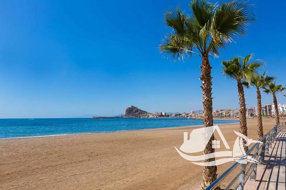 Pláž je vzdálená pouhých 600 metrů – stačí krátká procházka a jste u moře. V bezprostředním okolí najdete obchodní centrum, restaurace, kavárny i veškerou občanskou vybavenost, takže tu snadno strávíte léto i celý rok. Águilas je příjemné přímořské město s dlouhými plážemi, přístavem, promenádou a třiceti pěti plážemi rozprostřenými na 28 kilometrech pobřeží. Krajina je pestrá – od romantických zátok přes přírodní pláže až po městské pláže se službami. Klima je suché, teplé a stabilní, s průměrnými teplotami kolem 22 °C a více než 300 slunečnými dny ročně.