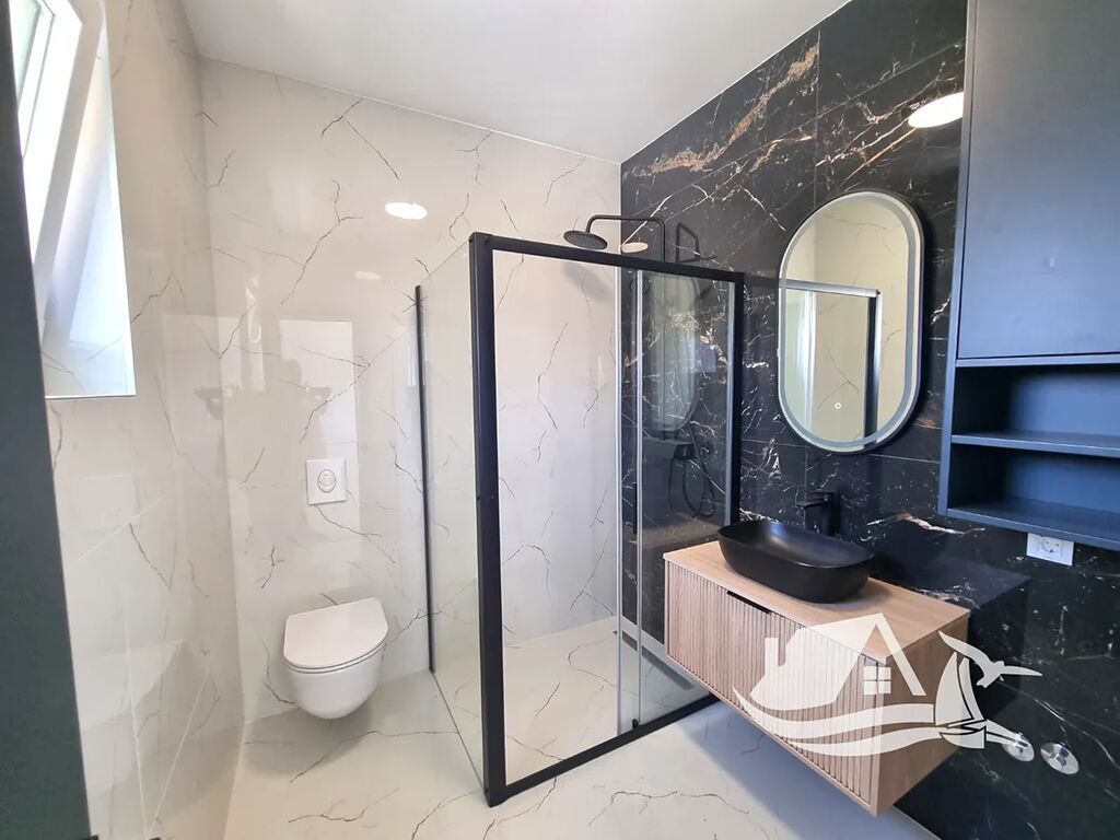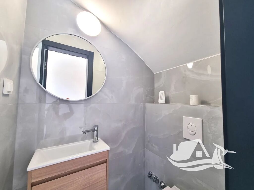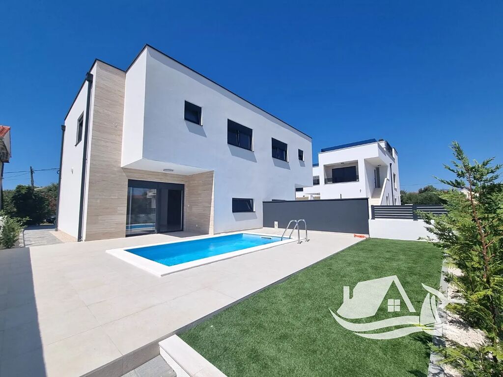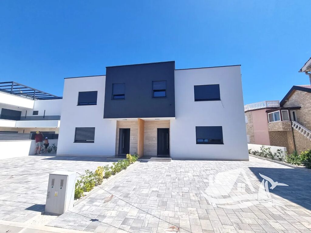 Krásný, moderní dvojdům s bazénem je na prodej na jižní straně ostrova Vir. Nachází se pouhých 260 m od moře.