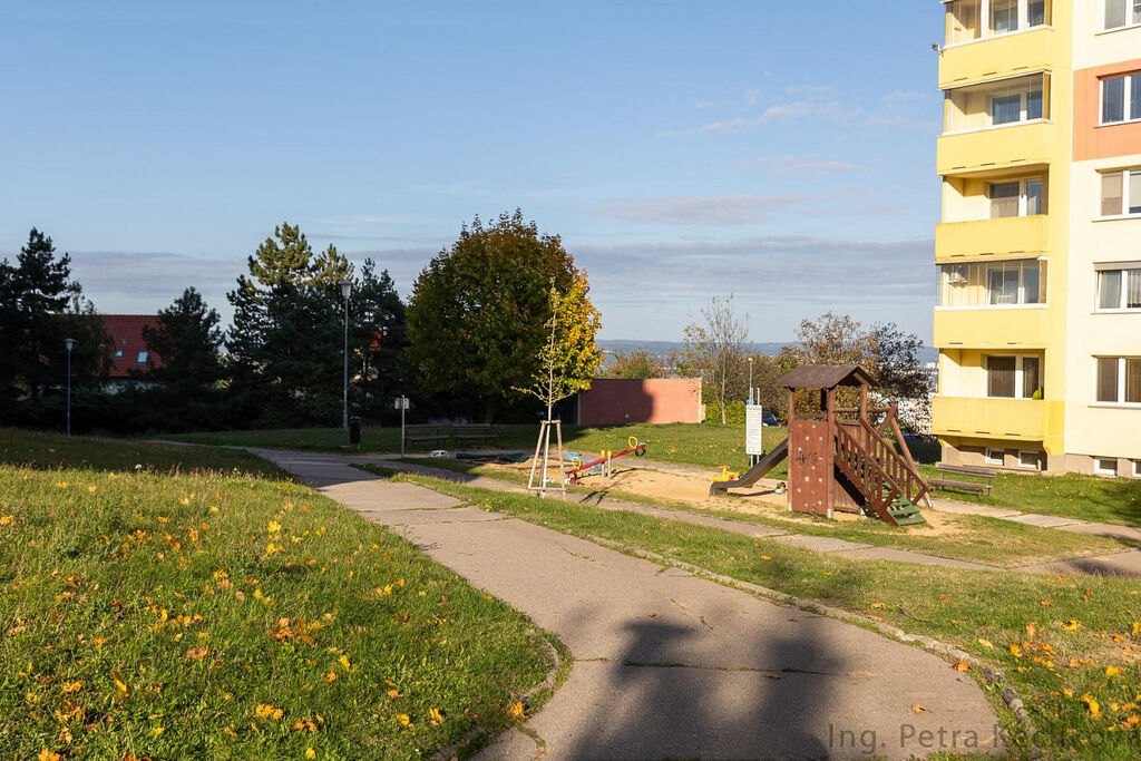 Každý pokoj má samostatný vstup. V bytě je spousta úložných prostorů - k dispozici je komora vedle bytu na patře, kolárna a sklepní kóje. Byt má výbornou dostupnost do centra, v blízkosti je zastávka MHD. Nachází se v klidné lokalitě s množstvím zeleně a kompletní občanskou vybaveností, naproti domu je dětské hřiště, v těsné blízkosti domu se nachází školka, škola, Aquapark, fitness, obora Holedná, pošta, Lidl a Albert. U domu je bezproblémové parkování.