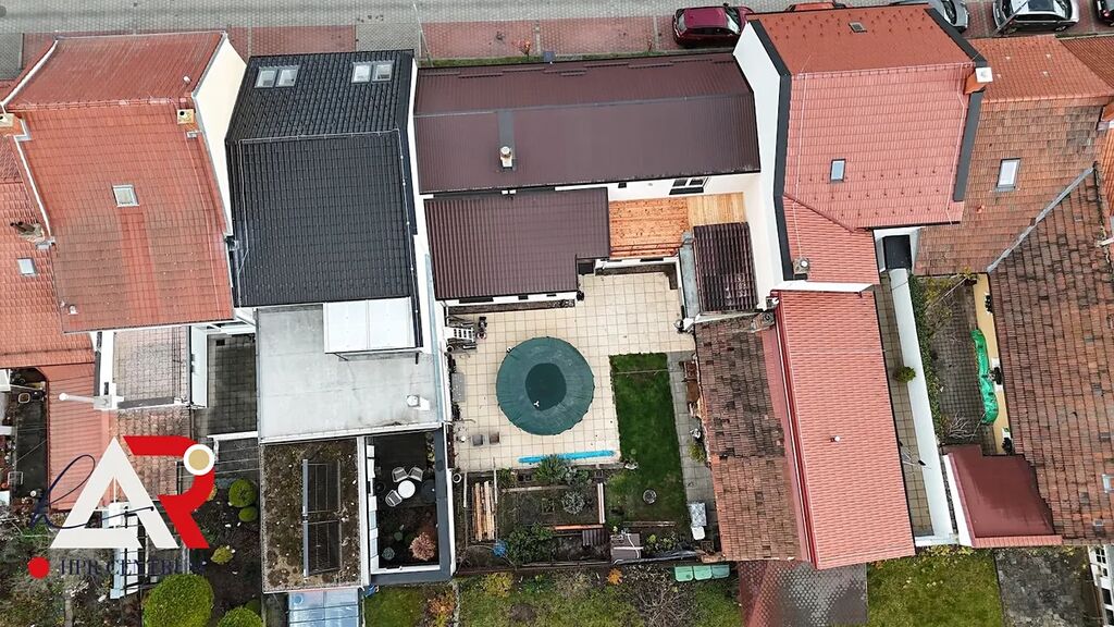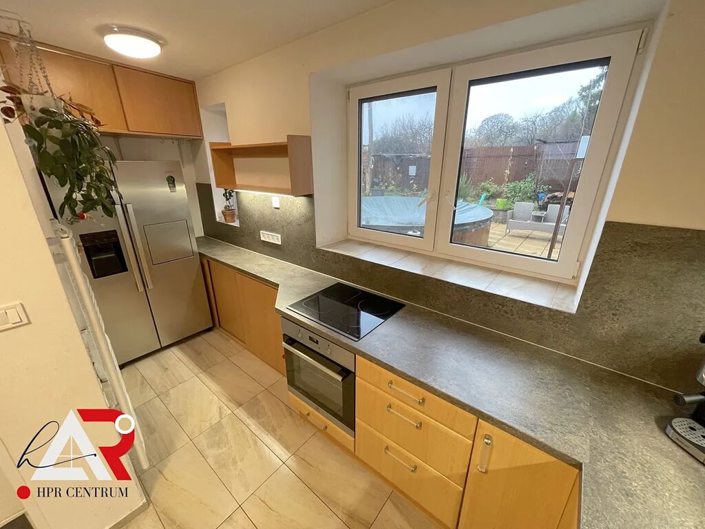Dům disponuje je také zahradou o ploše cca 200 m², na které najdete kryté posezení, bazén, záhony, i praktickou letní kuchyni – ideální prostor pro odpočinek, grilování či rodinná setkání. Na zahradu je pěkný výhled z prostorné terasy v podkroví domu.