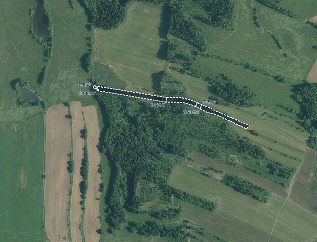 Uvedené parcely mají výměru 31 972 m². Celková prodávaná výměra ke 15 986 m². Z toho lesní pozemek je 3 696 m², trvalý travní porost 8 812 m², orná půda 3 254 m², ostatní plocha 177 m² a vodní plocha 47 m².
