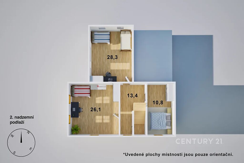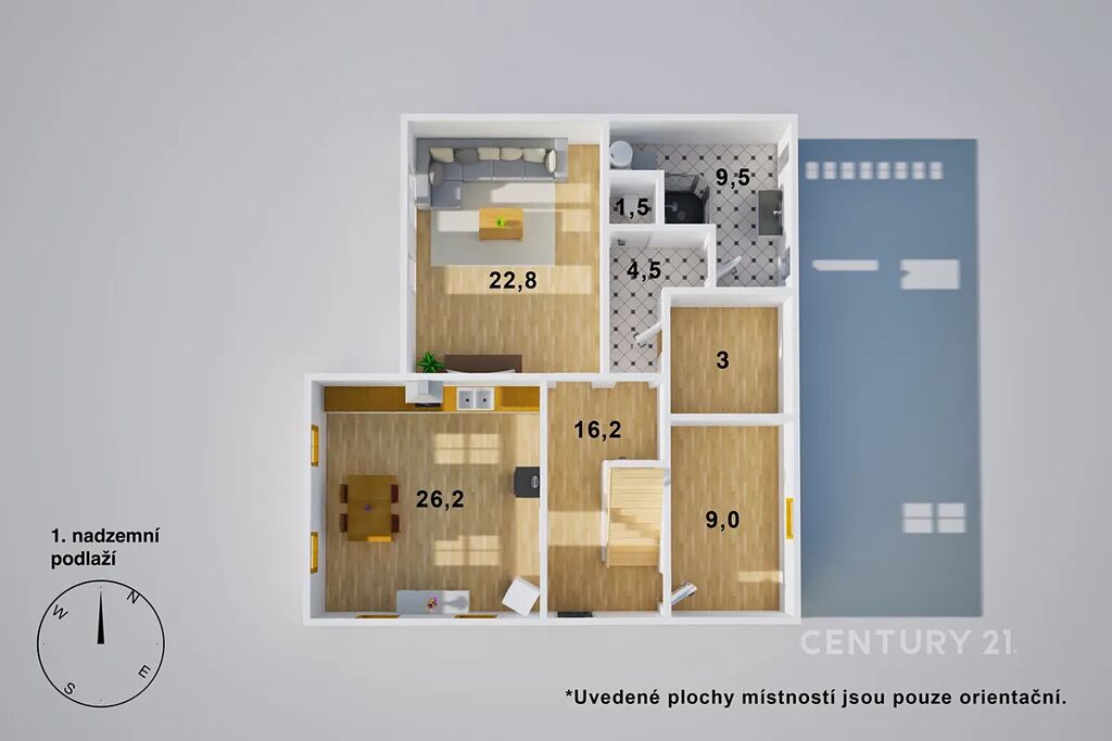 Dispozice 5+1 nabízí samostatné pokoje, ideální pro děti, pracovnu i hosty.