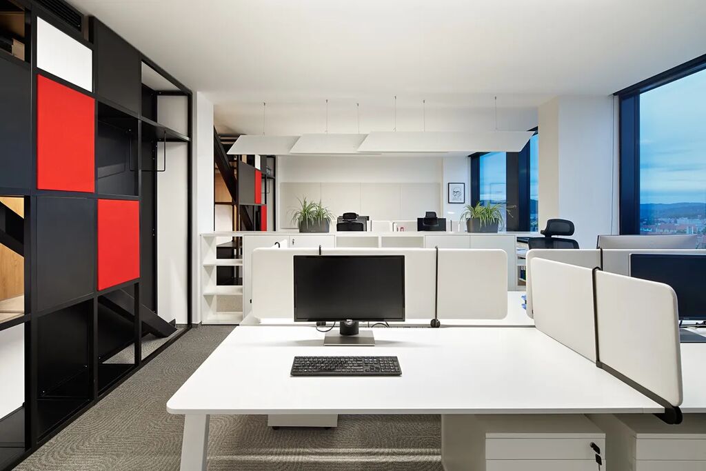 Komfortní pracovní prostředí zajišťuje moderní vzduchotechnika s rekuperací, která v kombinaci se samostatně otevíratelnými okny poskytuje stálý přísun čerstvého vzduchu. Osvětlení místností lze regulovat pomocí okenních rolet.