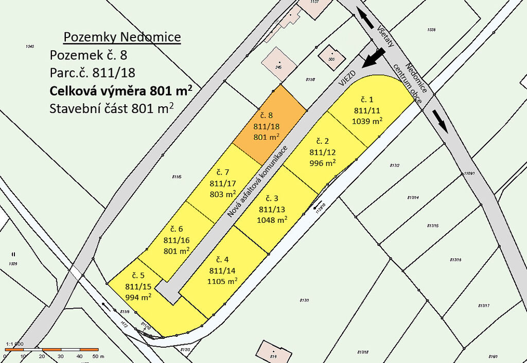 Stavební plocha 801 m² (celý pozemek je stavební).