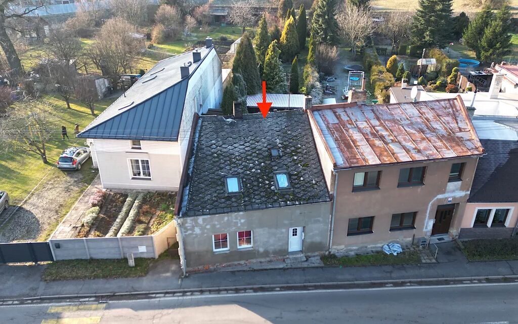 V části podkroví zatéká střechou, viditelné spoje sádrokartonu v podkroví, kotelna v 1.NP je stavebně nedokončena, omítka stropu v koupelně vykazuje zvýšenou vlhkost. Vnější zateplená omítka na čelní straně vykazuje zvýšenou vlhkost do úrovně oken. Do budoucna bude třeba vyměnit i celou střešní krytinu.