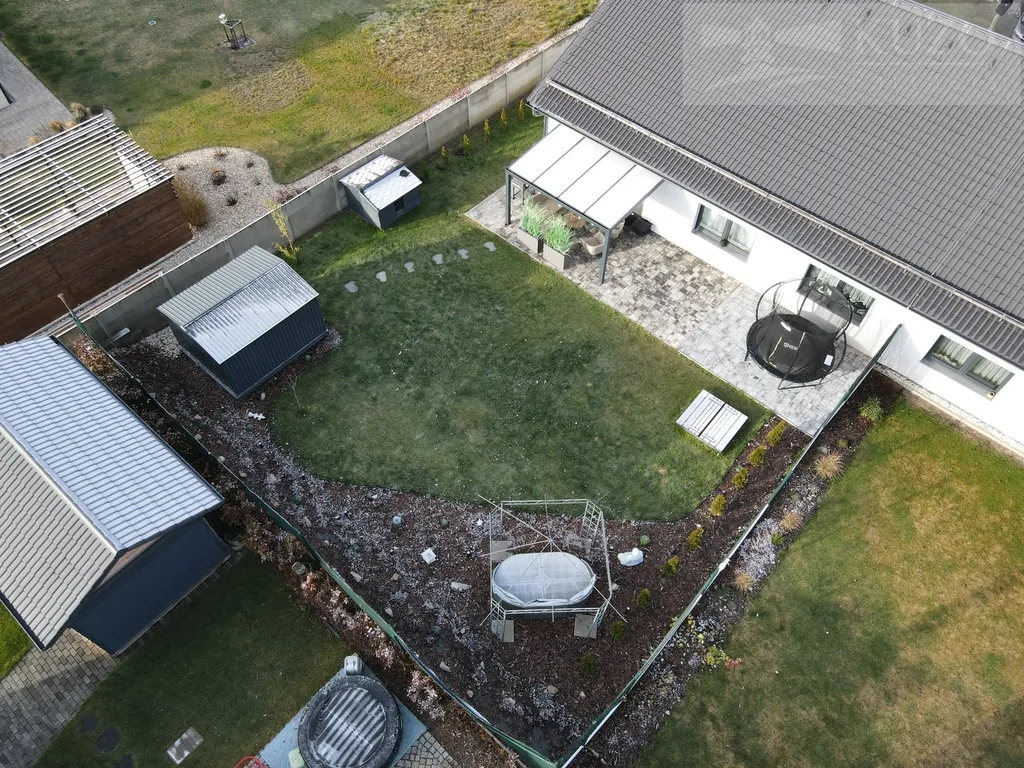 • Soukromá zadní zahrada o rozloze 268 m², ideální pro klidný odpočinek a rodinné aktivity.