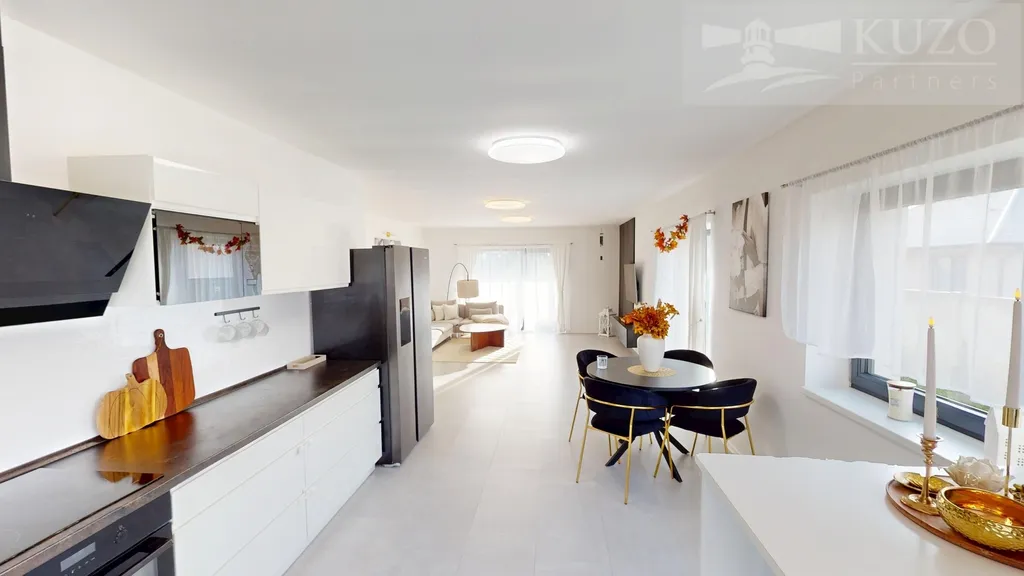 • Kuchyň: Plně vybavená kuchyňská linka včetně všech spotřebičů (trouba, lednice, digestoř, varná deska).