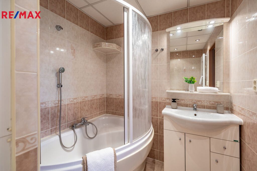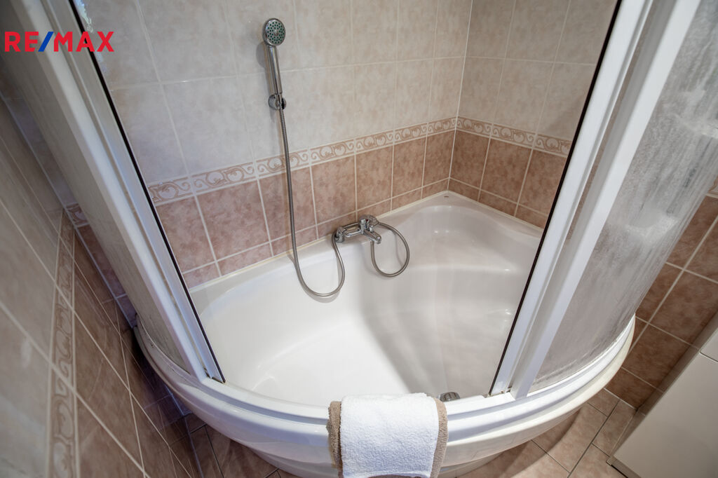 ✅ Koupelna je zděná, vybavená rohovou vanou a spojená s WC.