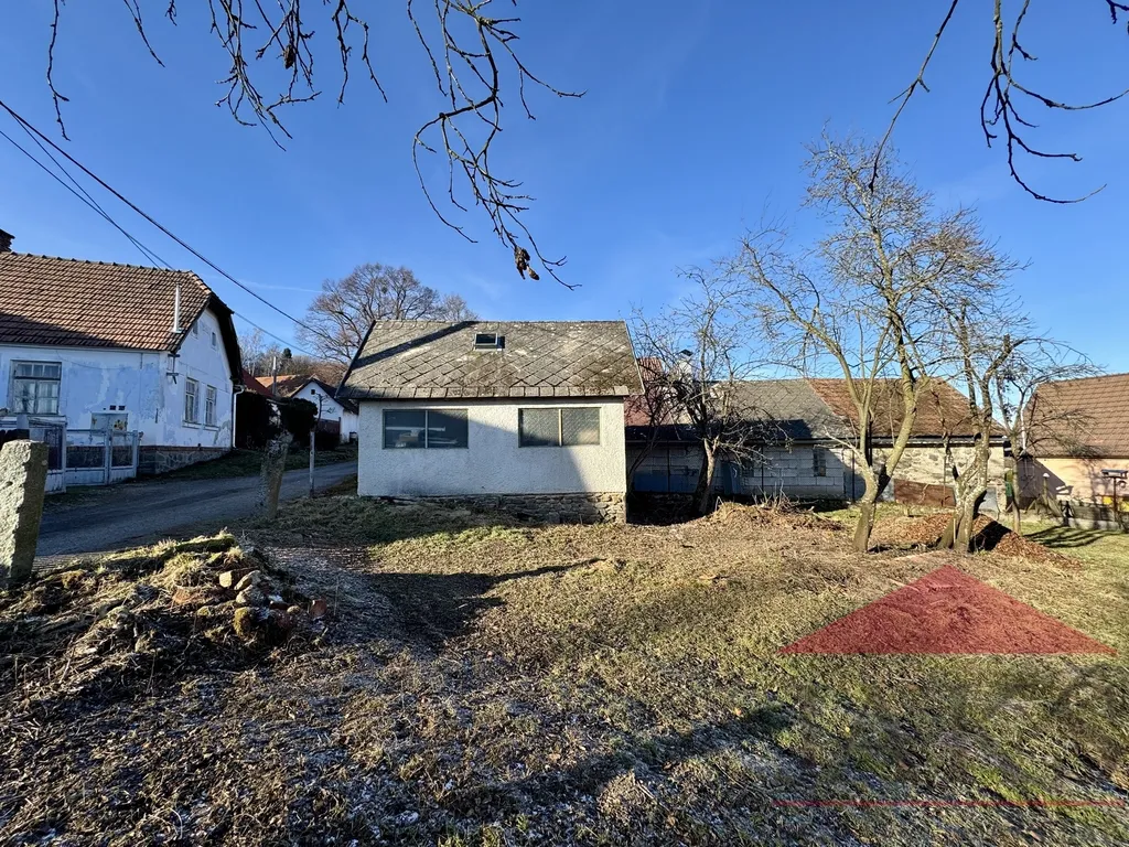 Popis a poloha: obdélníkový, slunný, mírně svažitý pozemek s ovocnými stromy, ležící ve velmi klidné původní části obce. Zděná garáž (zapsaná jako jiná stavba bez čp./č.ev.) v rohu u cesty = ideální zázemí pro stavbu. Přístup z obecní komunikace.